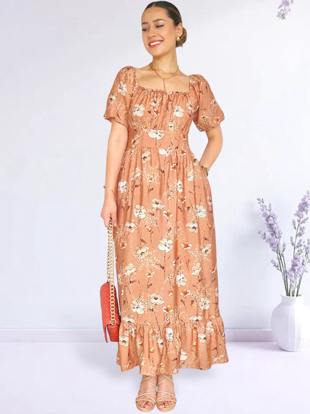 Vestido diseñado en corte A, con pretina ancha que permite ceñir en cintura y dar volumen en caderas, con multiaguja en espalda que no aprieta y permite el entalle perfecto. Viene con recogido en busto y falda en dos tiempos con recogido inferior, acompañado por unas mangas cortas tipo farol con elástico en la parte final, que lo podrás usar también como off shoulder, que lo hace muy romántico y femenino. Puedes usarlo con sandalias planas, de taco, stilettos, botas, botines y hasta zapatillas, dependiendo de la ocasión.