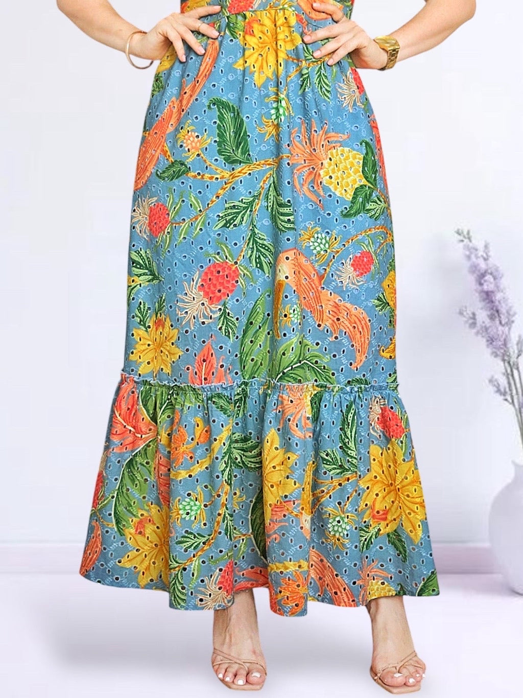 MAXIVESTIDO ESCOTE CORAZÓN ESTAMPADO ACERO