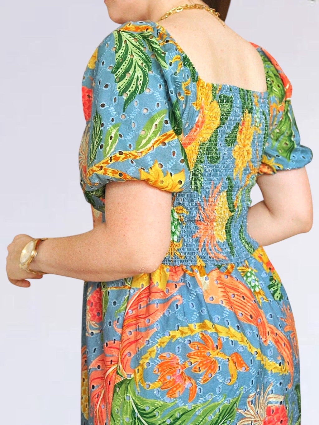 - Material: Broderie y forro de gasa crepé.