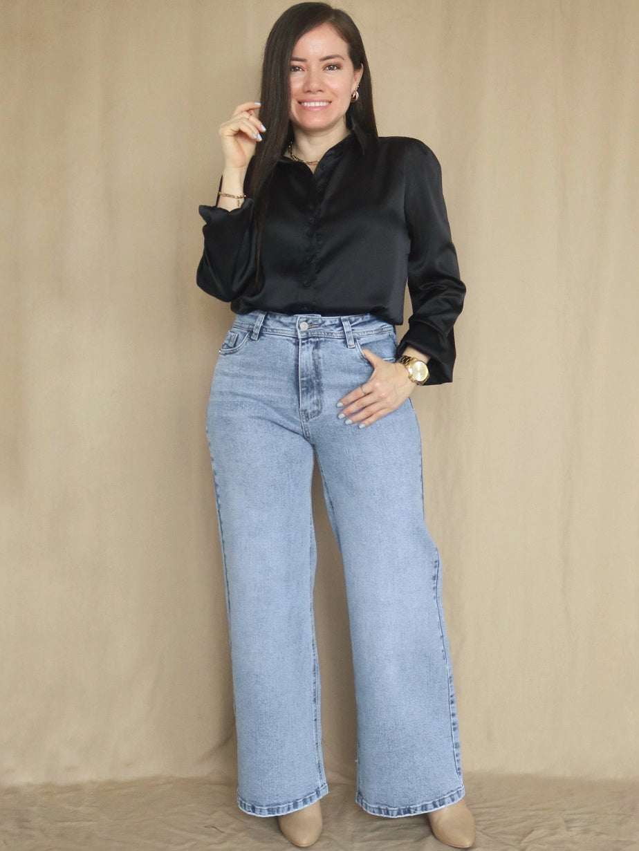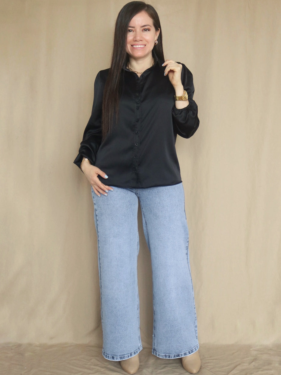 Camisa elaborada en tela de satín, con detalle de manga abullonada y elástico en puño para colocarlo a la altura que desees. Con un estilo suelto libre de pinzas. Por el tipo de tela tiene una caída perfecta para usar por fuera o por dentro de tu prenda inferior favorita. Viene con ojales y botones camiseros.