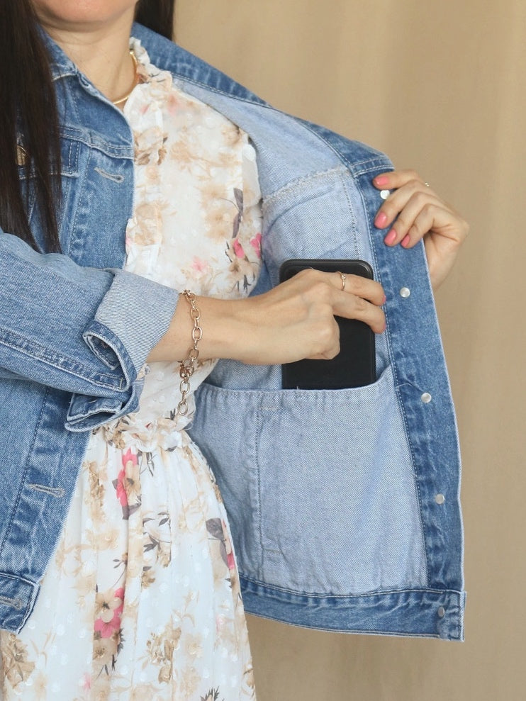 Casaca confeccionada en tela denim rígido, con el tamaño y ancho ideal. Viene con bolsillos secreteros por dentro.