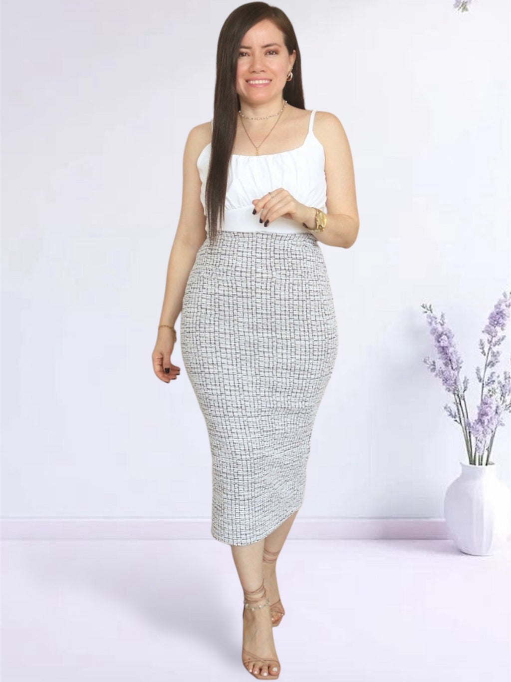 FALDA MIDI TWEED