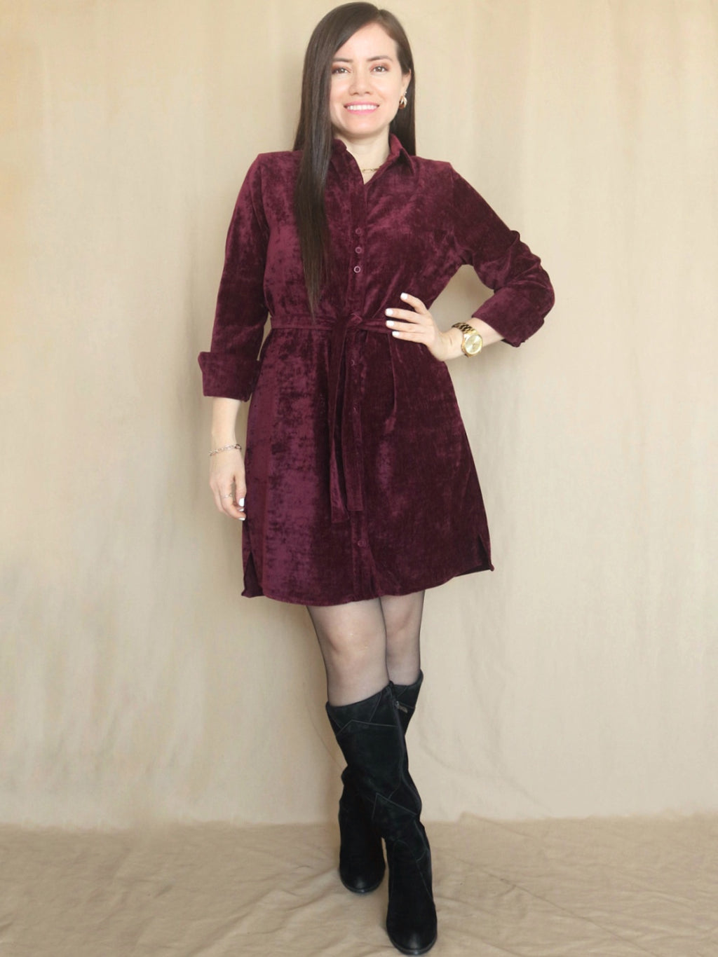 Vestido diseñado en ligero corte A, en estilo camisa con botones en todo el delantero y en puños, que te permitirá doblar la manga a la altura que desees. Además de traer una cinta para poder ceñir la cintura y dar mayor volumen a las caderas. Puedes usarlo con sandalias de taco, sandalias planas, stilettos, botas, botines y hasta zapatillas, dependiendo de la ocasión.