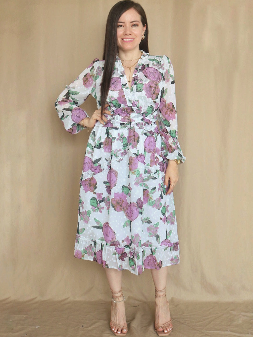 VESTIDO MIDI FULL BOBOS CON PRETINA ESTAMPADO HUESO